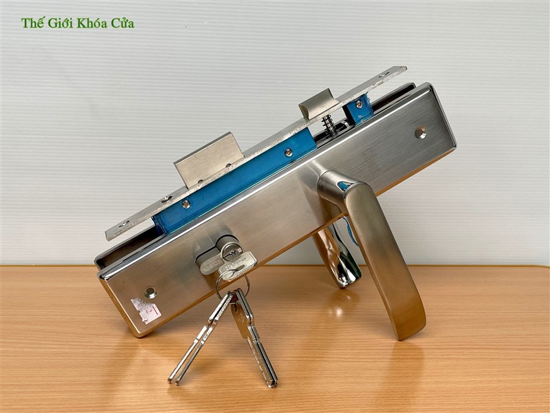 Khóa được sản xuất trên dây chuyền công nghệ hiện đại của CHLB Đức. Khóa có tay dạng thẳng, ốp khóa vuông, thân khóa làm bằng Inox, chốt lẫy khóa làm bằng đồng cho độ bền cao. Khóa sử dụng 5 chìa bằng đồng cắt CNC.
