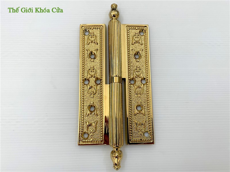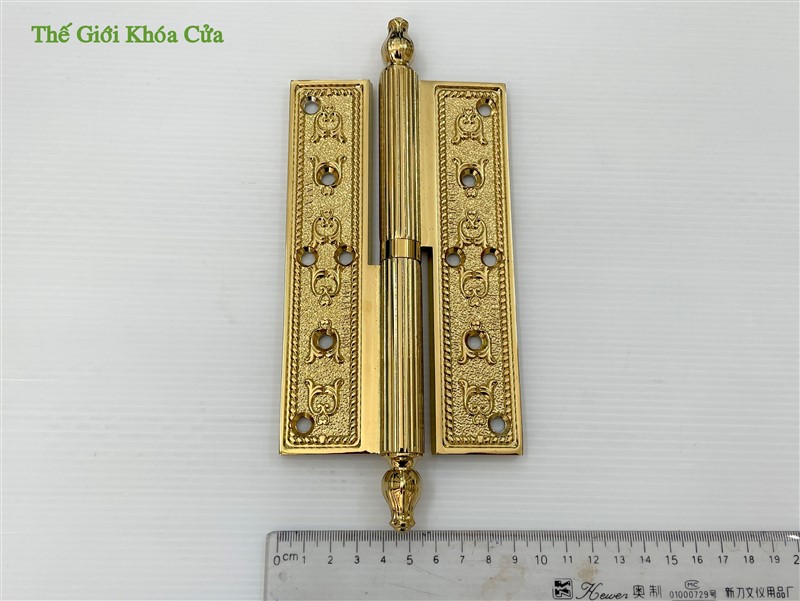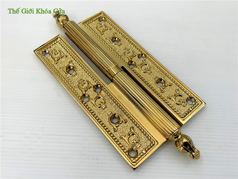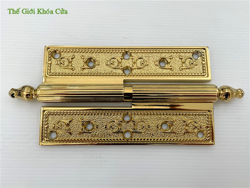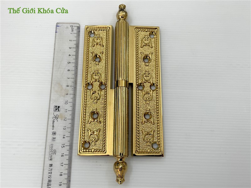 Bản lề có hoa văn tân cổ điển, góc cạnh sắc nét trau chuốt tinh tế. Bản lề có chiều dài cánh 16cm, phù hợp lắp cho cửa có độ dầy từ 4,5cm trở lên. Thường được lắp cho cửa chính hoặc cửa đại sảnh