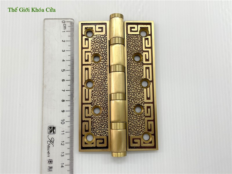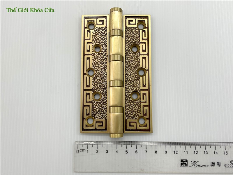 Bản lề đồng hoa văn chữ vạn được sản xuất hoàn toàn bằng đồng thau, bề mặt được tạo tác hoa văn đẹp mắt, phù hợp với nhiều phong cách kiến trúc. Bản lề có trục bằng thép cho độ chịu lực cao.