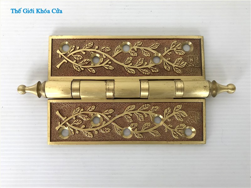 Bản lề lá bằng đồng hoa văn cành hoa được làm từ đồng thau, trục bản lề được làm bằng thép cho độ chịu lực cao. Bản lề được sản xuất tại Trung Quốc, có hoa văn sắc nét, đẹp mắt.