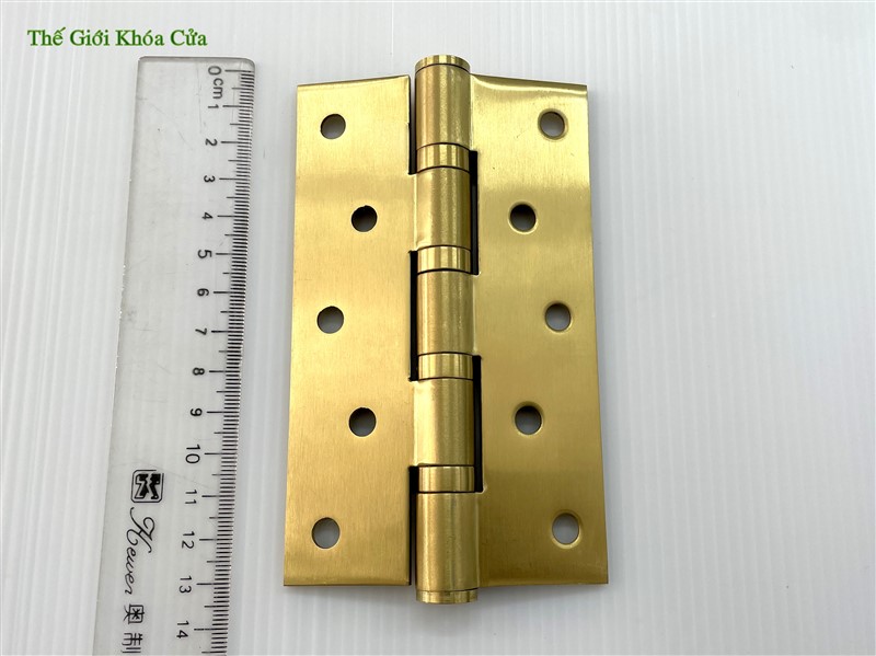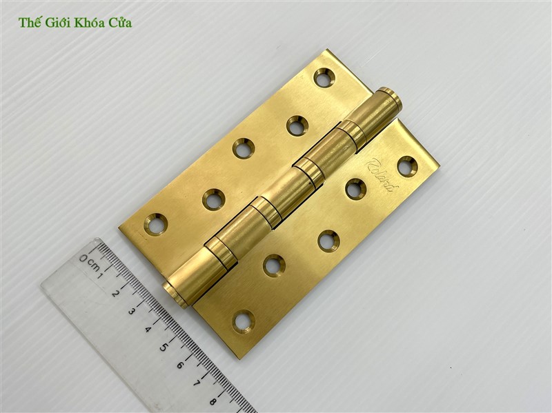 Bản lề lá Inox mạ Titan Roland được sản xuất trên dây chuyền công nghệ hiện đại, bản lề được làm bằng inox nguyên bản sau đó bề mặt được mạ Titan tạo màu vàng bắt mắt cho sản phẩm.