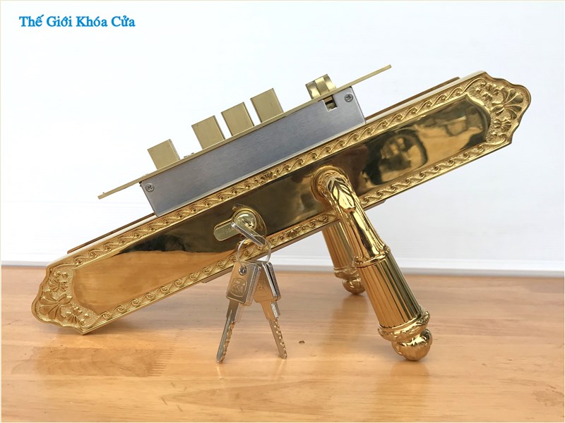 Khóa là dòng sản phẩm cao cấp nhất cửa thương hiệu Gold SSA, được làm bằng đồng đỏ 57% sau đó được mạ vàng bằng công nghệ mạ PVD ( công nghệ mạ bằng phương pháp bay hơi bám trụ bề mặt ở nhiệt độ cao ) tạo nên cho sản phẩm bề mặt sáng bóng, đường nét tinh xảo và không bị ô xi hóa theo thời gian