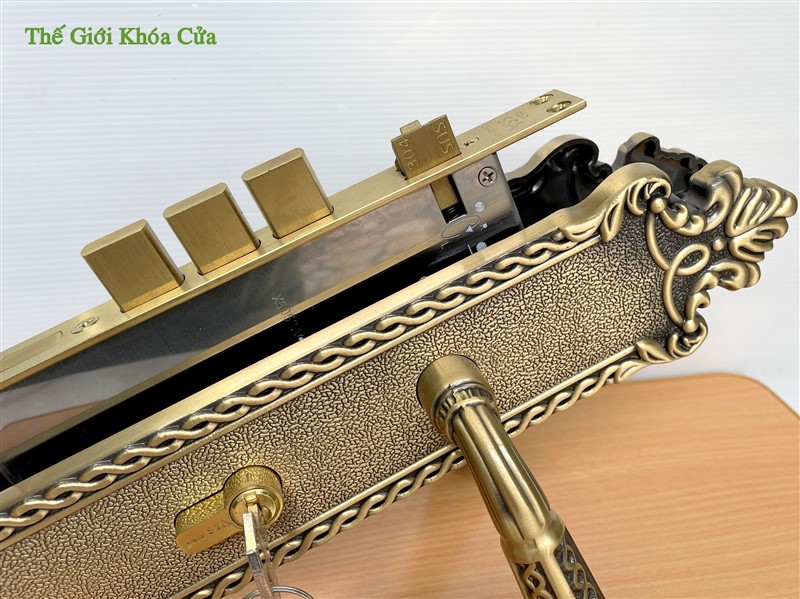 Khóa cửa bằng đồng Gold SSA BL-6868-SF có kích thước lớn thường được lắp cho cửa chính, cửa 2 hoặc 4 cánh ( khóa dài 40cm )