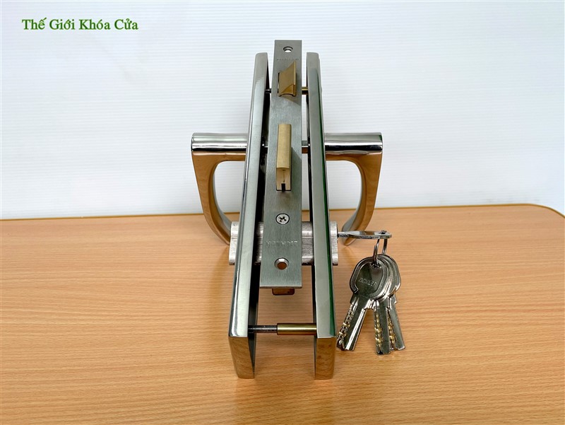 thân khóa được làm bằng Inox, các chi tiết bên trong được tra sẵn dầu mỡ giúp cho khóa hoạt động ổn định, chốt và lẫy khóa được làm bằng đồng chống cạy chông khoan phá.