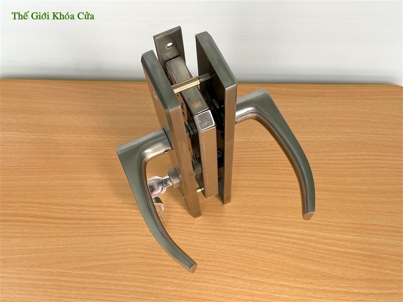 Khóa được làm bằng inox nguyên tấm trên dây chuyền công nghệ hiện đại của CHLB Đức. Ốp khóa hình chữ nhật bề mặt xước mờ, tay khóa dạng cong giúp người sử dụng thuận tiện khi cầm nắm,