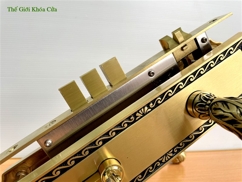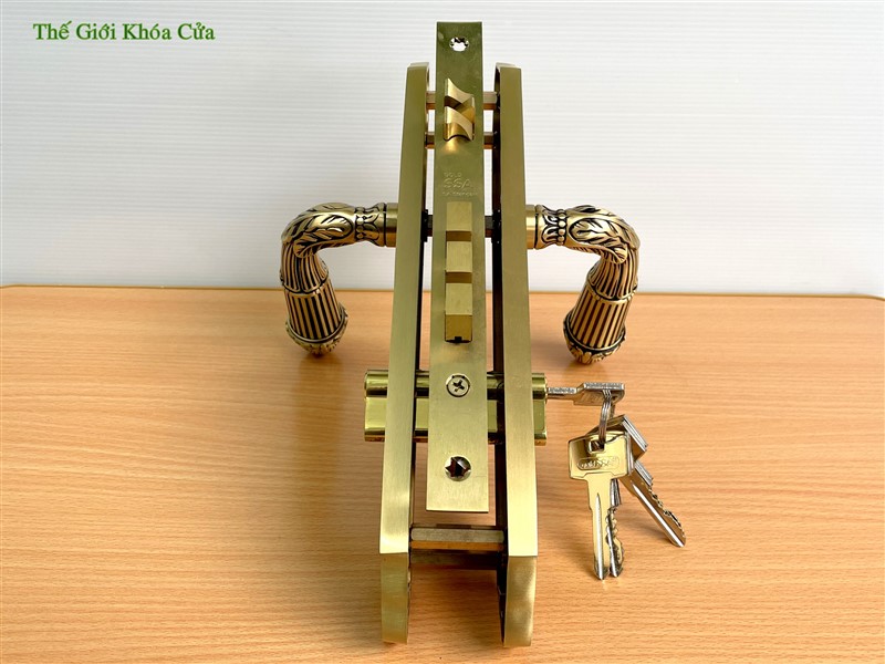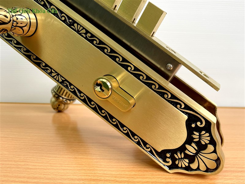 Khóa cửa Gold SSA BM-9393-SF được làm bằng đồng đỏ 57% sau đó được xử lí bề mặt bằng 2K tạo nên cho sản phẩm bề mặt sáng bóng, đường nét tinh xảo.