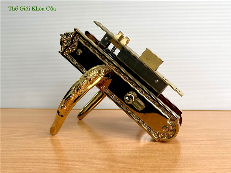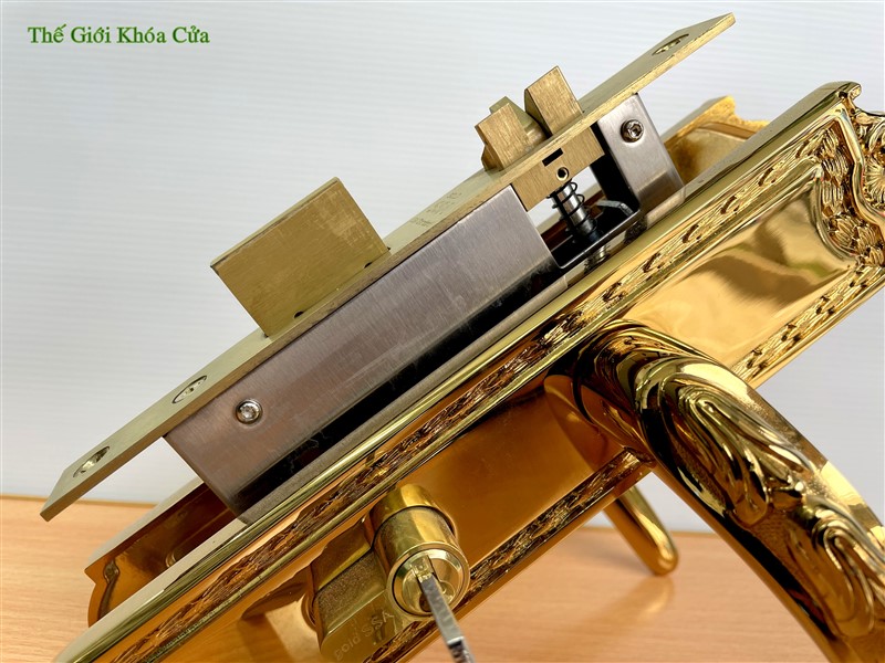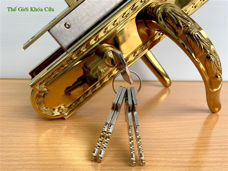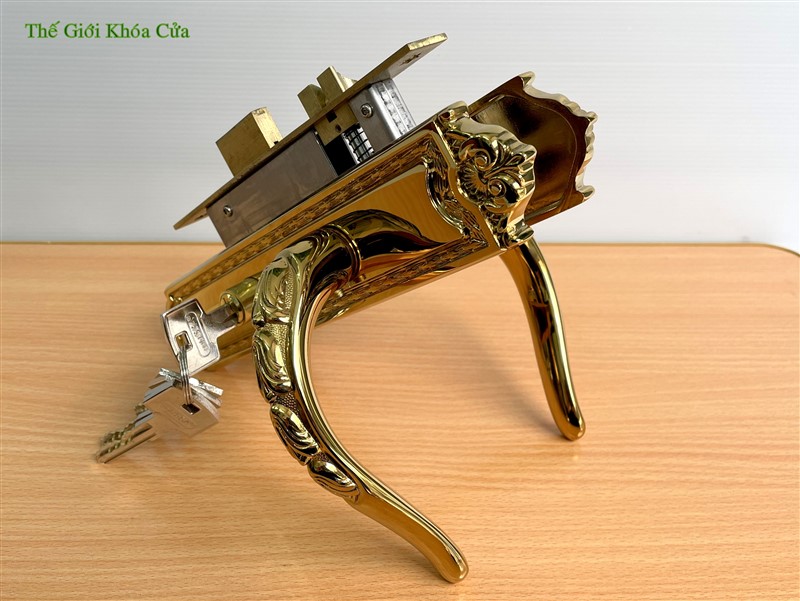 Khóa là dòng sản phẩm cao cấp nhất cửa thương hiệu Gold SSA, được làm bằng đồng đỏ 57% sau đó được mạ vàng bằng công nghệ mạ PVD ( công nghệ mạ bằng phương pháp bay hơi bám trụ bề mặt ở nhiệt độ cao ) tạo nên cho sản phẩm bề mặt sáng bóng, đường nét tinh xảo và không bị ô xi hóa theo thời gian