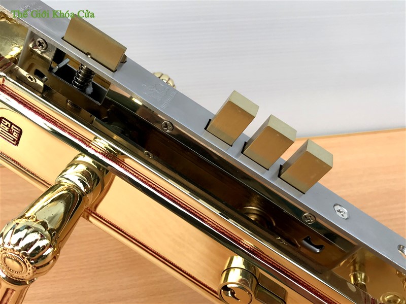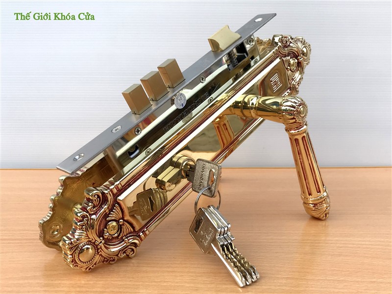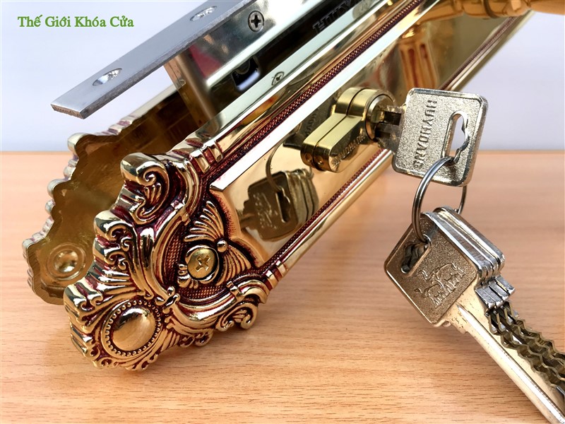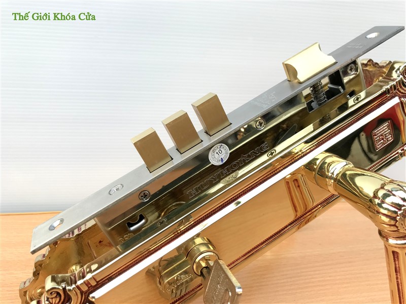 Thân khóa : Loại to với chốt vuông và chốt vát bằng đồng