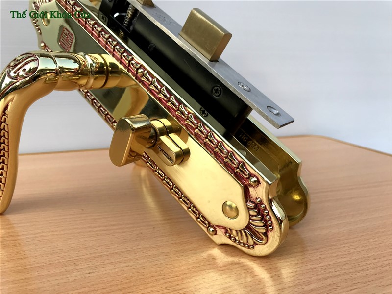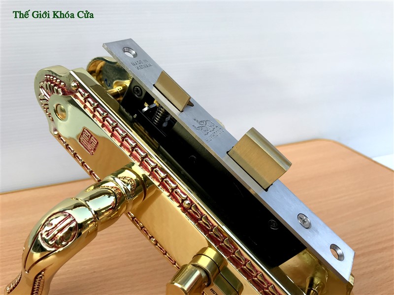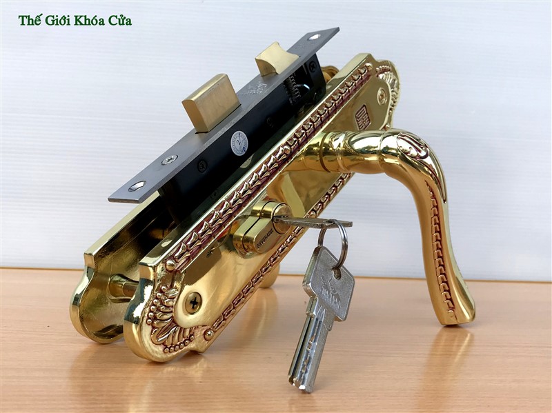 Khóa được làm bằng đồng thau, là một trong những dòng sản phẩm bán chạy bậc nhất do chất lượng đảm bảo cùng hoa văn phù hợp với kiến trúc của Việt Nam