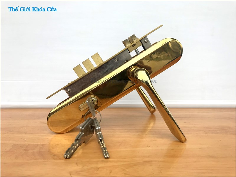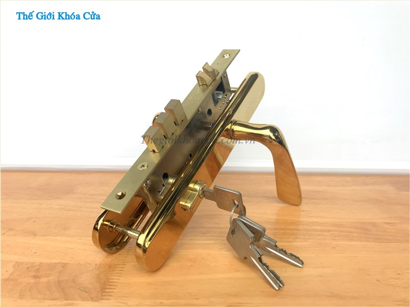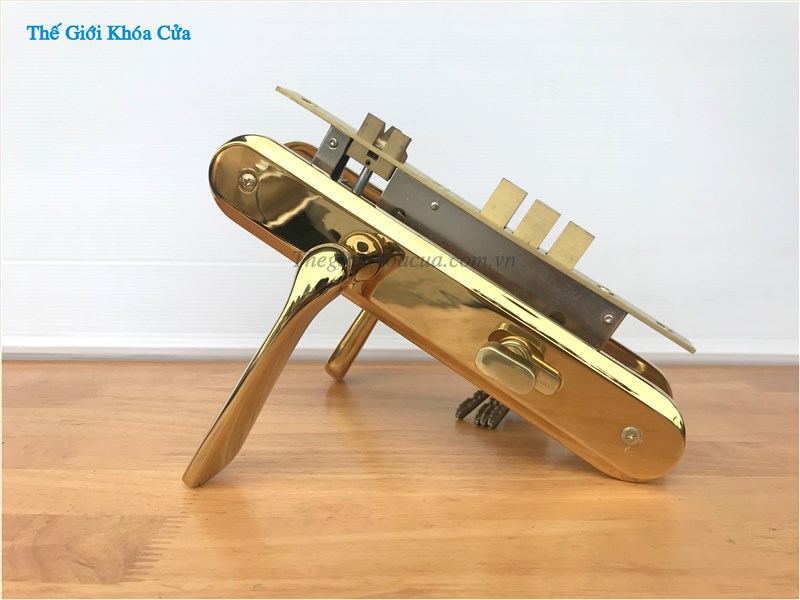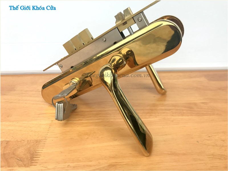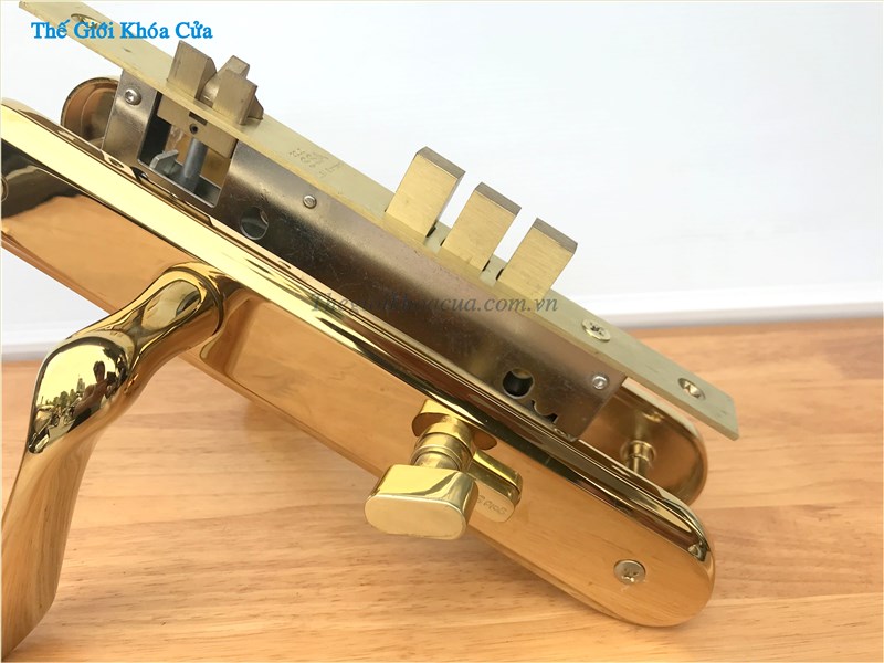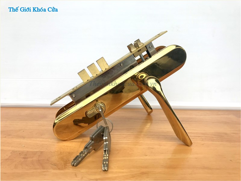 Khóa là dòng sản phẩm cao cấp nhất cửa thương hiệu Gold SSA, được làm bằng đồng đỏ 57% sau đó được mạ vàng bằng công nghệ mạ PVD ( công nghệ mạ bằng phương pháp bay hơi bám trụ bề mặt ở nhiệt độ cao ) tạo nên cho sản phẩm bề mặt sáng bóng, đường nét tinh xảo và không bị ô xi hóa theo thời gian