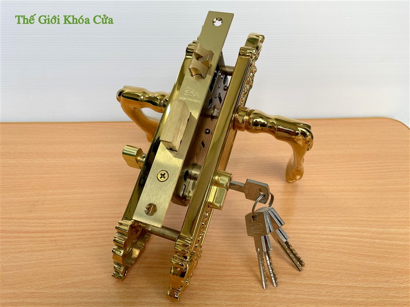 Khóa cửa Gold SSA BS-6363-PVD được làm bằng đồng chất lượng cao, bề mặt được mạ vàng PVD giúp khóa bền màu theo thời gian. Khóa có thiết kế hoa văn tân cổ điển sang trọng, tinh tế cầu kì