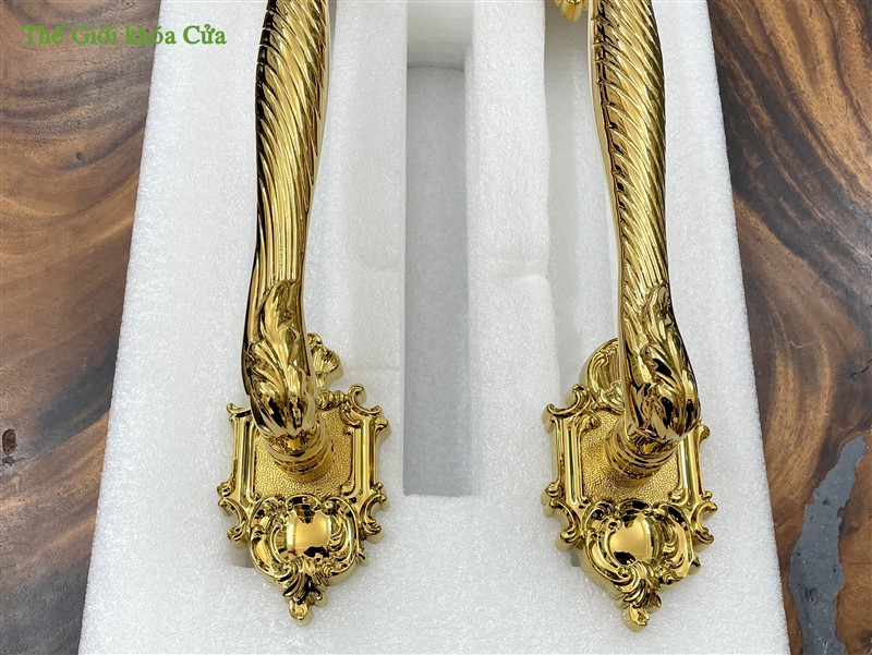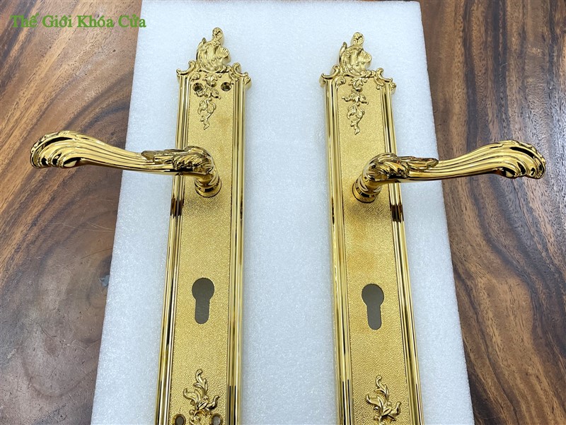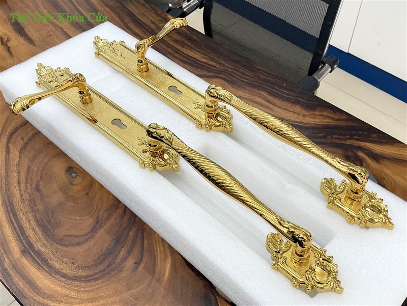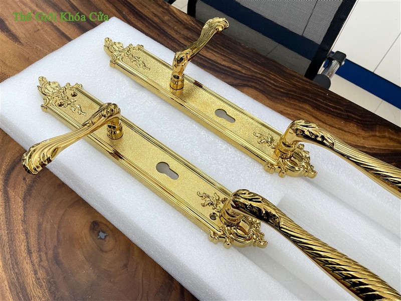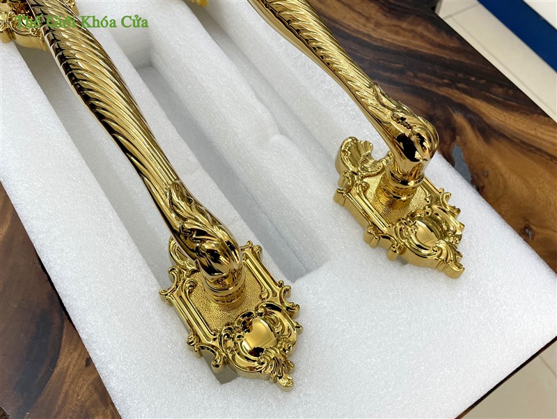 Khóa có hoa văn cầu kì tinh xảo dạng tân cổ điển, từng đường nét được trau chuốt tỉ mĩ không vết lỗi. Khóa xứng đáng là bộ khóa cửa đại sảnh đẳng cấp.