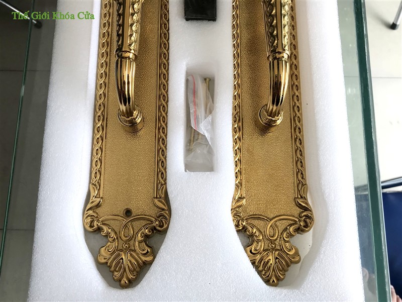 Khóa có hoa văn cầu kì tinh xảo dạng tân cổ điển, từng đường nét được trau chuốt tỉ mĩ không vết lỗi. Khóa xứng đáng là bộ khóa cửa đại sảnh đẳng cấp.