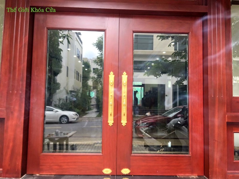 Khóa thường được lắp cho bộ cửa đại sảnh rất lớn.