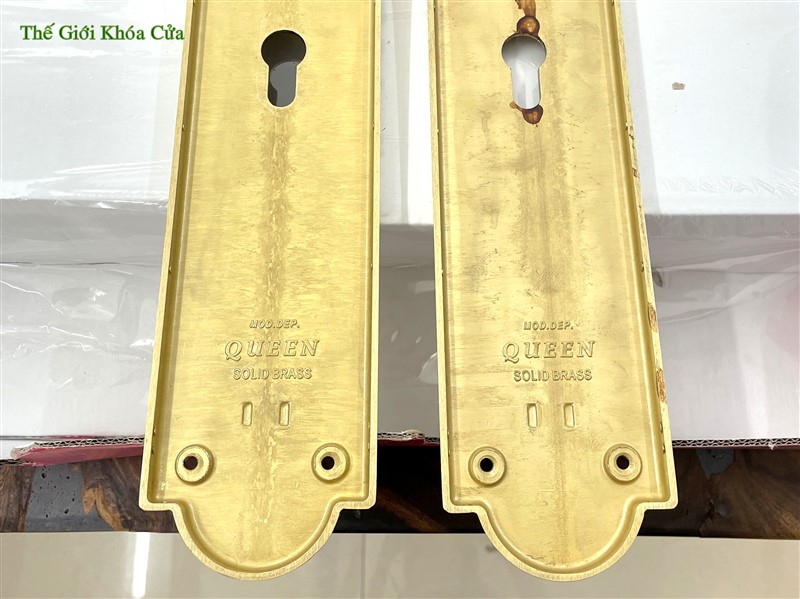 Khóa Lineacali dòng Queen có kích thước lớn với chiều dài 40 cm với bề rộng ốp khóa 8cm phù hợp làm khóa cửa đại sảnh hoặc khóa cửa chính.