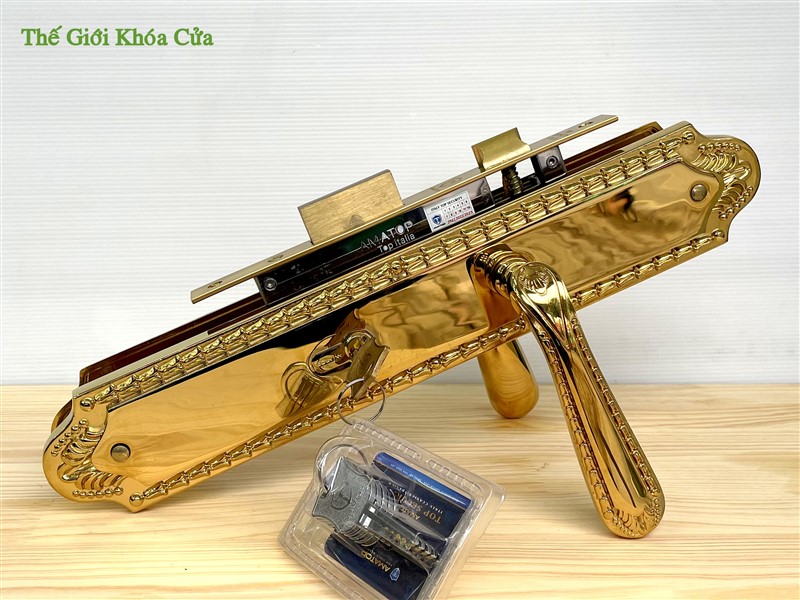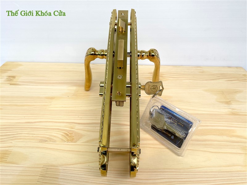 Khóa cửa bằng đồng AMATOP L - 07 - PVD có kích thước khá lớn ( dài 39cm ) thường được lắp cho cửa chính 2 hoặc 4 cánh