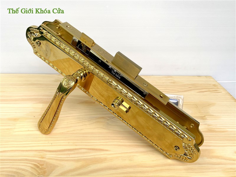 Khóa được làm bằng đồng thau cao cấp bề mặt tay ốp khóa được mạ PVD màu vàng bóng sang trọng, chống bay màu theo thời gian. Tay khóa dạng thẳng tròn giúp hình dáng khóa trông vững chắc khi lắp đặt và thuận tiện khi nắm cầm.