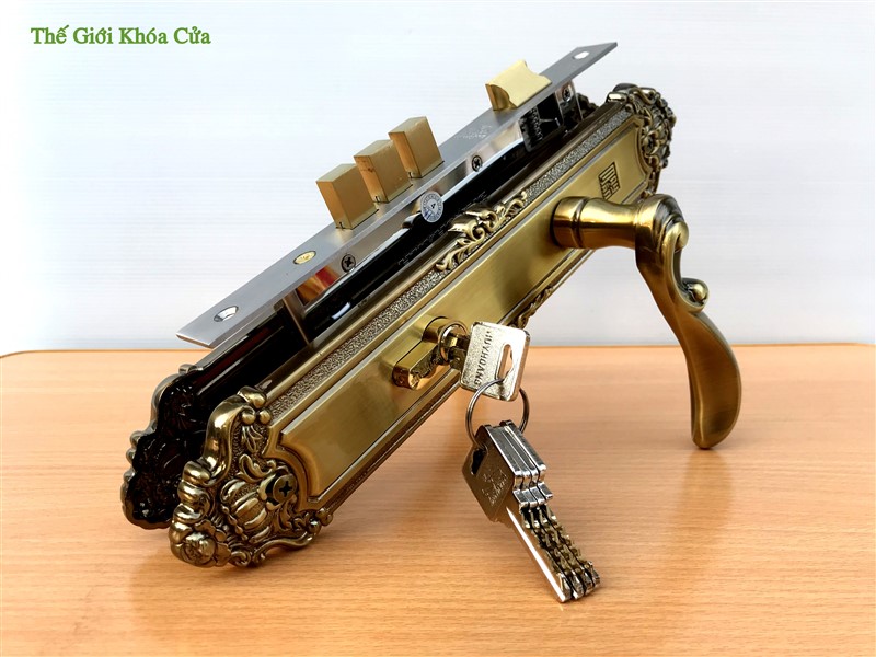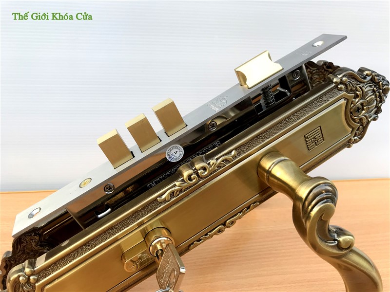 Khóa được làm bằng đồng thau, là một trong những dòng sản phẩm bán chạy bậc nhất do chất lượng đảm bảo cùng hoa văn phù hợp với kiến trúc của Việt Nam