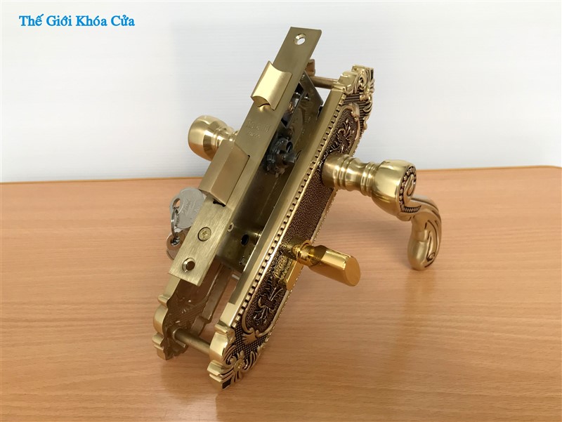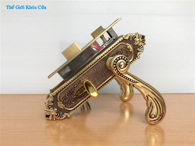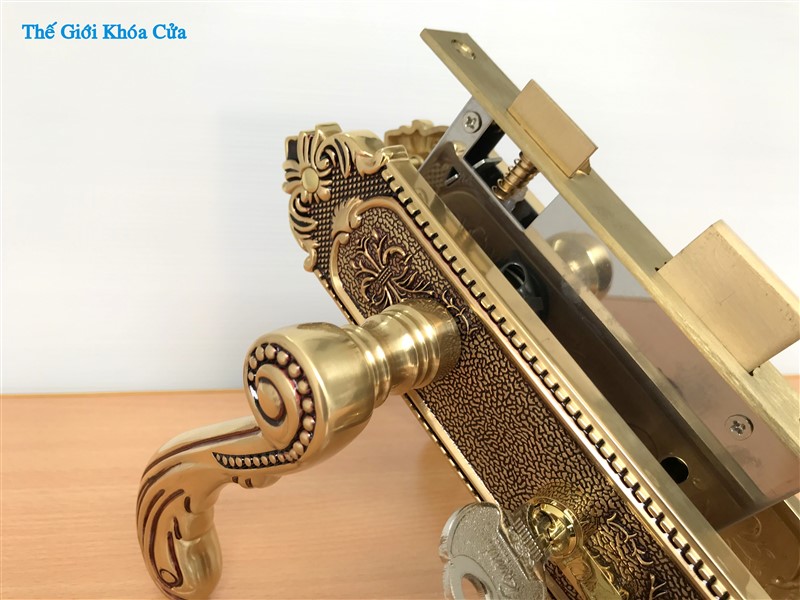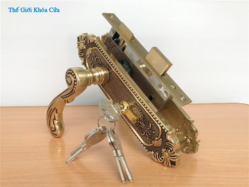 Khóa là dòng sản phẩm cao cấp được làm hoàn toàn bằng đồng đỏ chất lượng cao sau đó được phủ một lớp 2K chống ô xi hóa, Khóa có thiết kế hoa văn tân cổ điển, đường nét tinh xảo không vết lỗi.