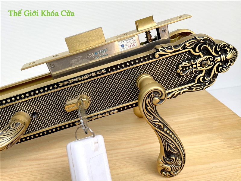 Khóa cửa AMATOP là thương hiệu khóa cửa Việt Nam chuyên về các dòng khóa đồng. Chất lượng đồng được kiểm nghiệm theo tiêu chuẩn Việt Nam.Khóa AMATOP chính hãng luôn có chìa khóa phụ và 5 chìa chính được niêm phong cẩn thận.