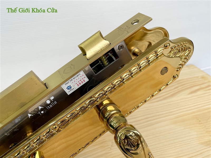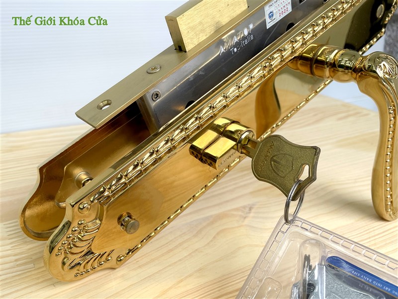 Khóa cửa bằng đồng AMATOP M - 07 - PVD có kích thước trung bình ( dài 33cm ) thường được lắp cho cửa thông phòng lớn hoặc cửa chính
