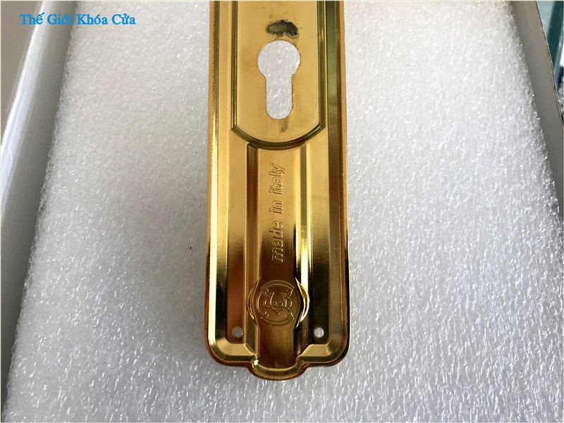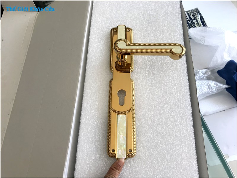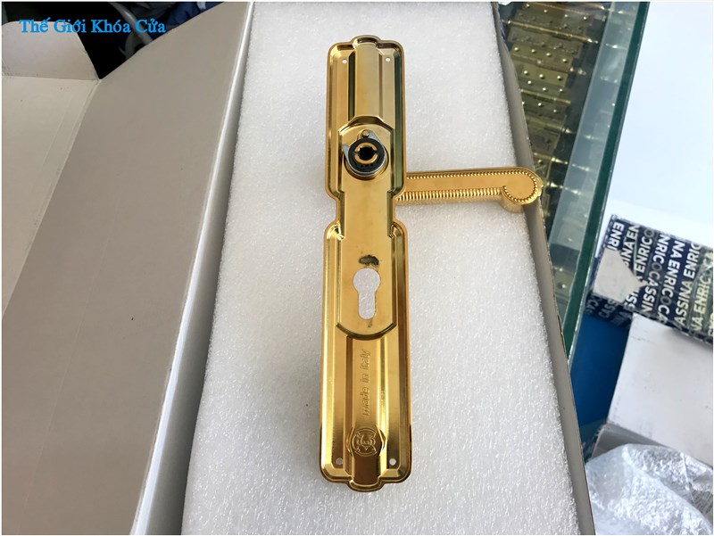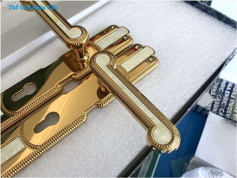 Khóa cửa nhập khẩu Italy Enrico Cassina dòng Madreperla - được làm hoàn toàn từ những thanh đồng cao cấp bằng phương pháp dập nóng tạo hoa văn hoàn toàn thủ công. Bề mặt của khóa được mạ vàng 24k trong 2000 phút mạ bởi hãng mạ danh tiếng Ompico.