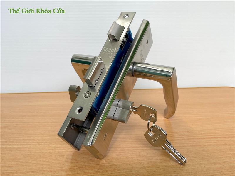 Khóa cửa Kospi được làm bằng Inox đúc. Khóa được sản xuất tại Trung Quốc và được ưa chuộng do có giá thành vô cùng hợp lí.