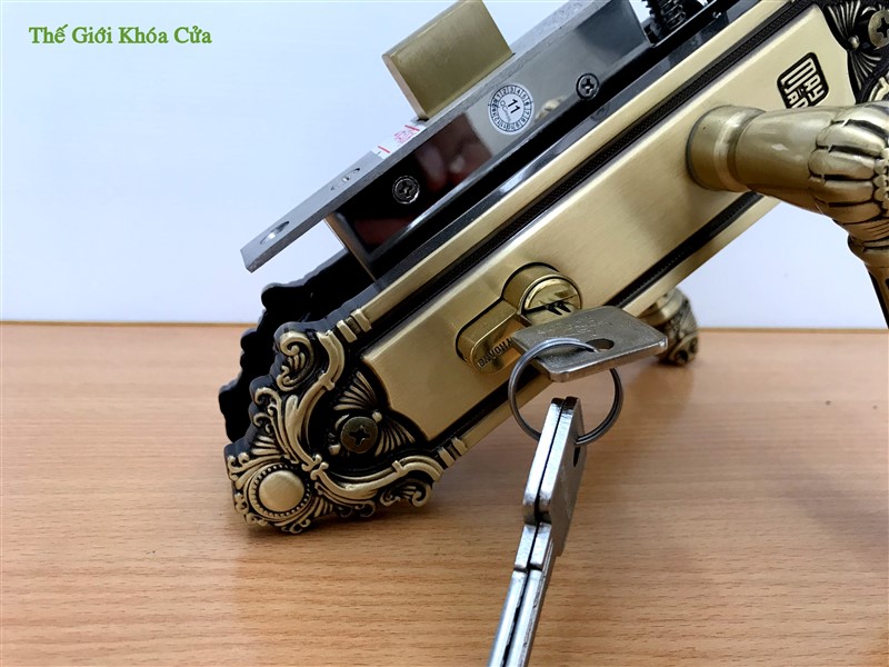 Khóa được làm bằng đồng thau, là một trong những dòng sản phẩm bán chạy bậc nhất do chất lượng đảm bảo cùng hoa văn phù hợp với kiến trúc của Việt Nam