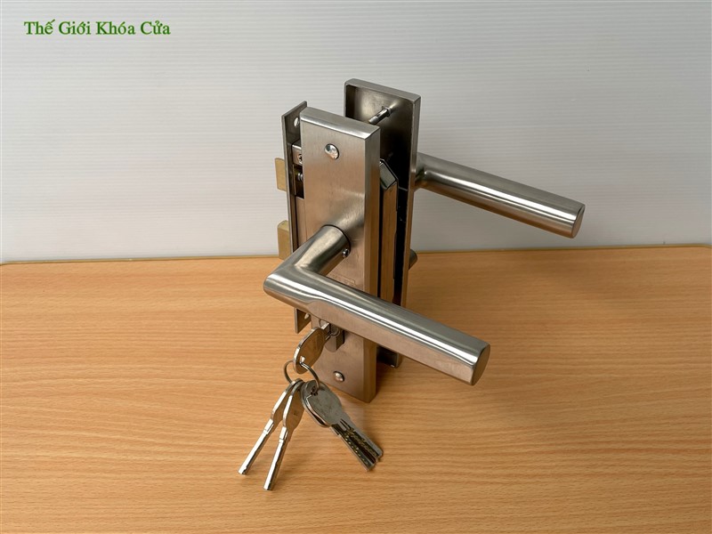 Khóa được làm từ Inox nguyên tấm, ốp khóa hình chữ nhật bề mặt xước mờ, tay khóa dạng thẳng tròn giúp cho khóa có hình dạng chắc chắn bề thế và không bị lỗi mốt theo thời gian.