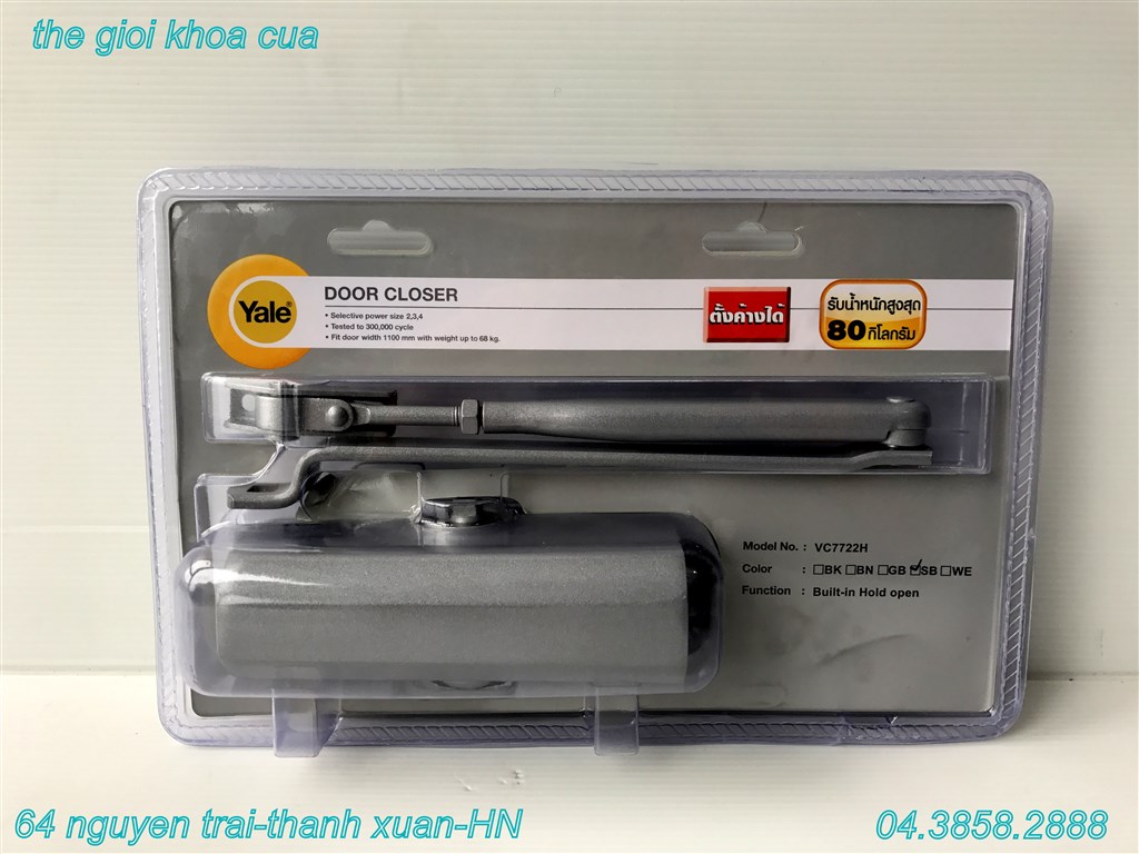 Tay co thủy lực Yale VC - 7722 H - SB có dừng ở 90 độ có góc mở tối đa 180 độ. Số lần đóng mở được kiểm nghiệm vào khoảng 300.000 lần.